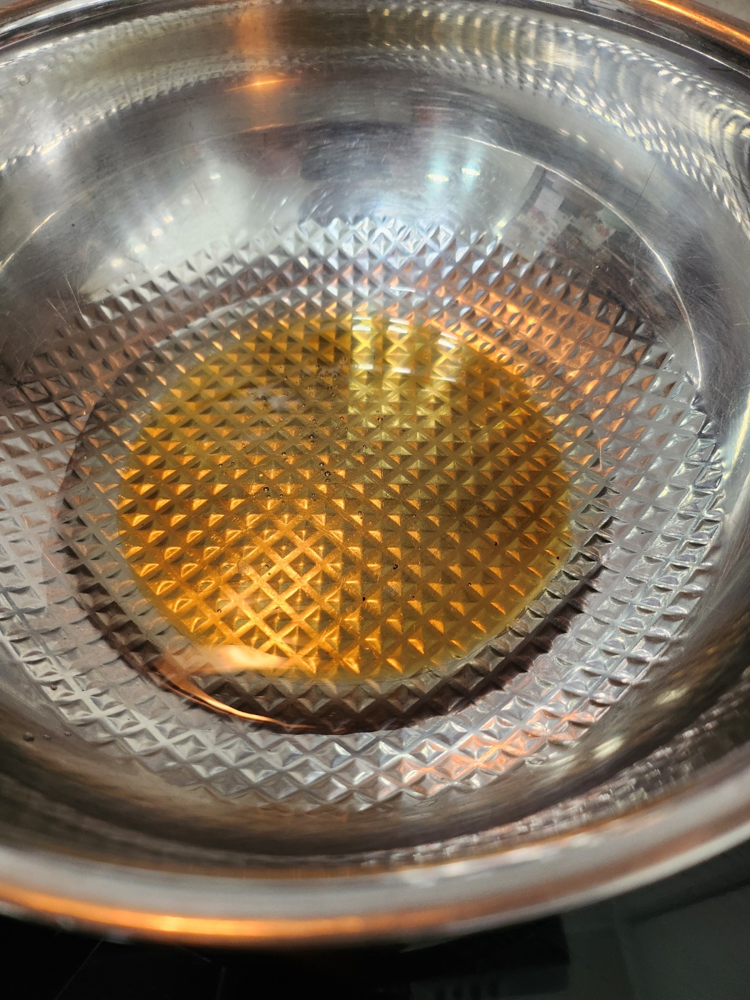 - 움푹한 웍이나 팬에 포도씨유(30ml)와 꿀(듬뿍) 넣는다.