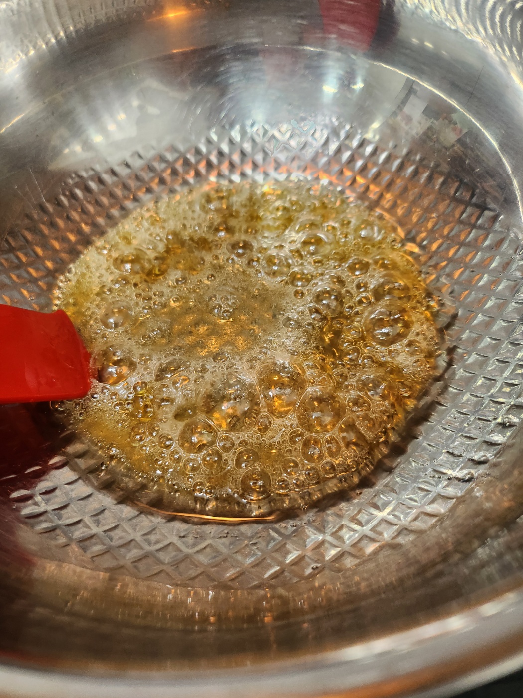 - 중불에서 꿀과 기름을 보글보글 끓인다.