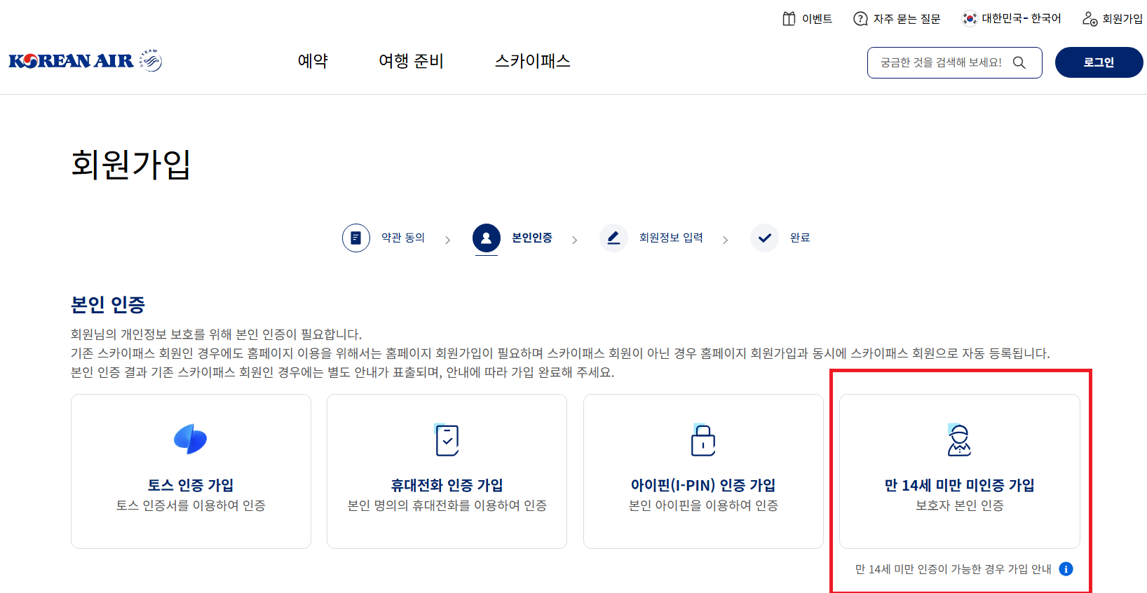 14세 미만 항공사 가입하기