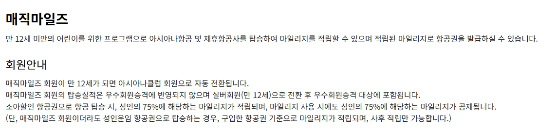 14세 미만의 어린이어도 보호자가 대신 아이의 회원 가입 후 가족 마일리지 합산이 가능하다.